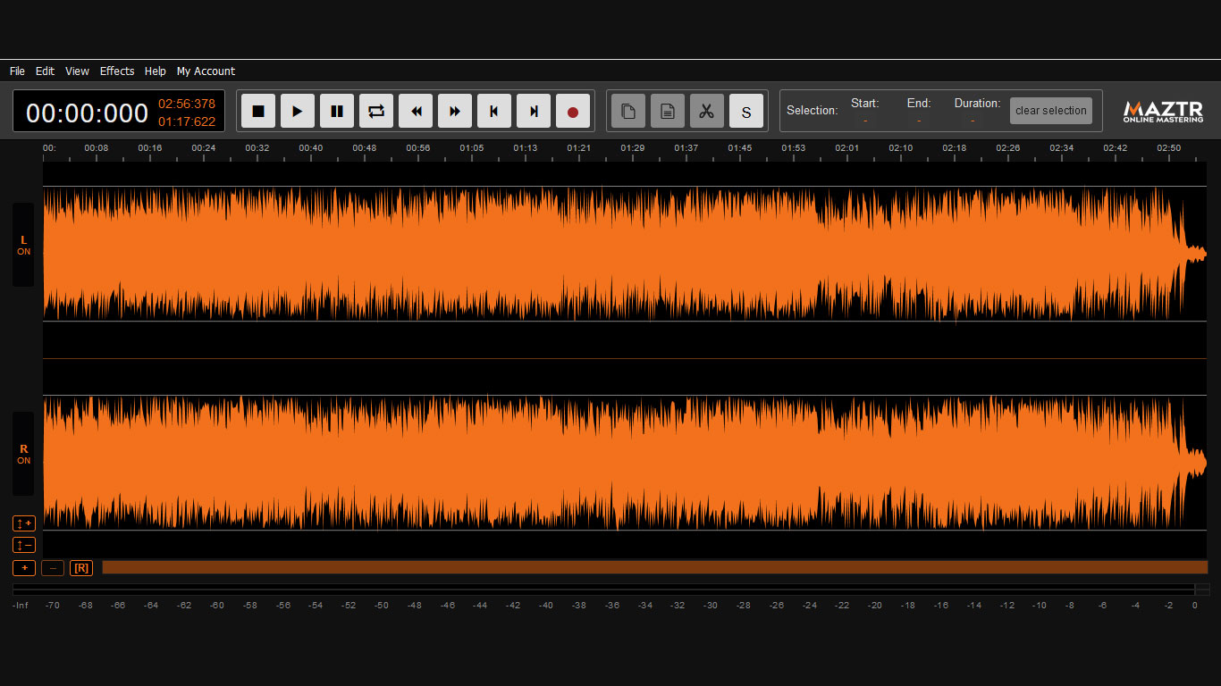 Maztr's free online Audio File Editor allows you to record new audio tracks, modify existing tracks or convert files right in your browser without downloading any software. It's not designed to replace your DAW (Digital Audio Workstation - click here if you need a free DAW) but instead gives you quick access to a suite of audio editing tools you can use from any location to tweak your tracks and help get them ready for mastering.